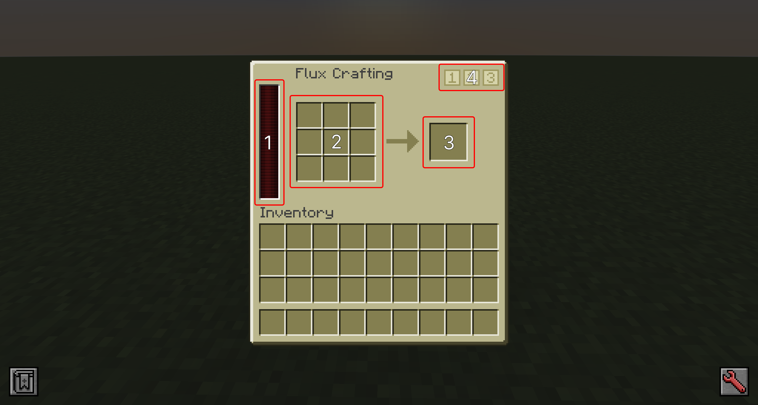 Placing a Chest on top of the Flux Crafter with a recipe selected will enable the auto-insert functionality. The Flux Crafter will use some energy to pull any items from the Chest that can be used in the selected recipe.