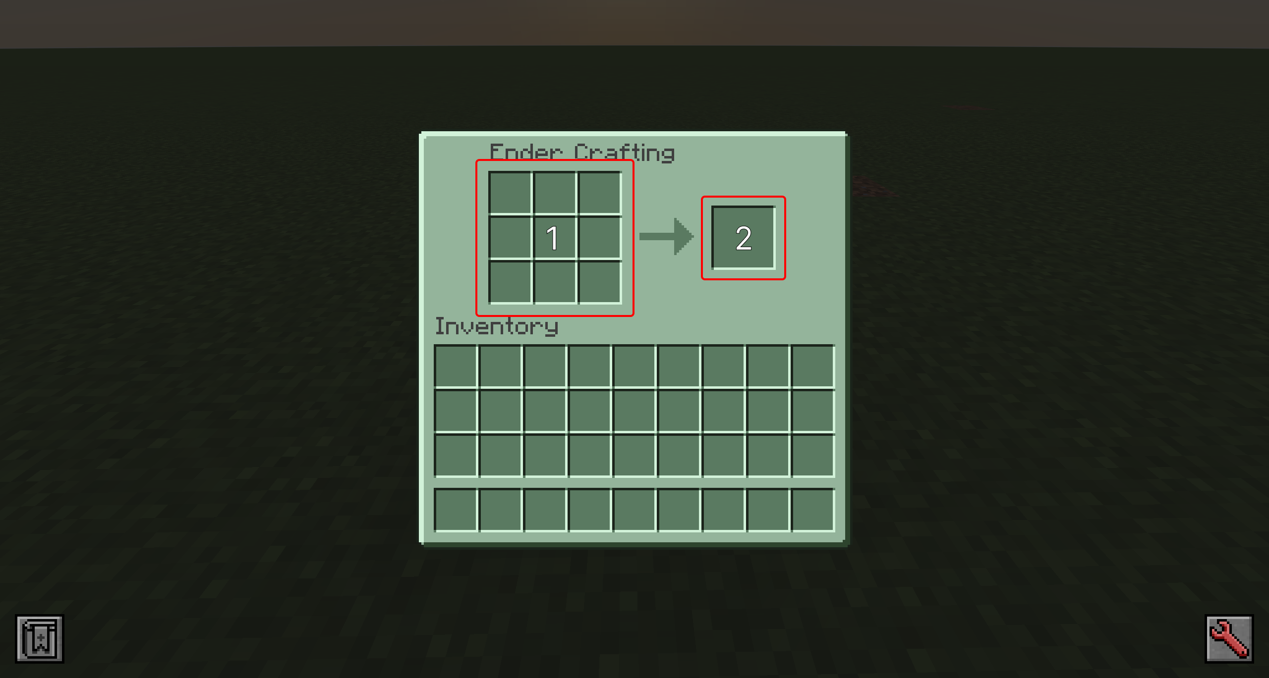 Place the Ender Crafter in-world and right-click to view the GUI. Inside there's a 3x3 crafting grid, similar to a Crafting Table. Place your recipe ingredients into the grid and the Ender Crafter should begin to craft.